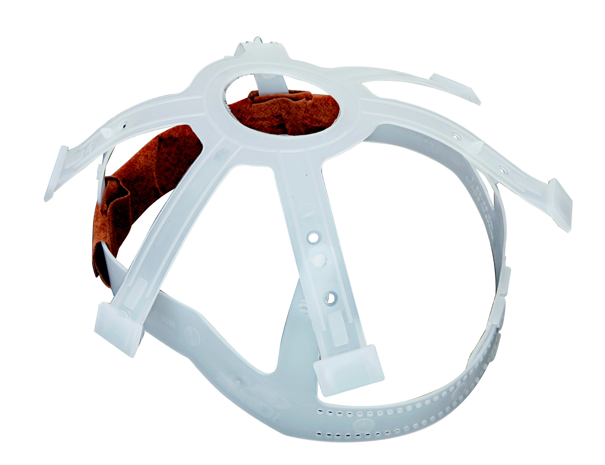 Six point polytehylene suspension harness for safety helmet.