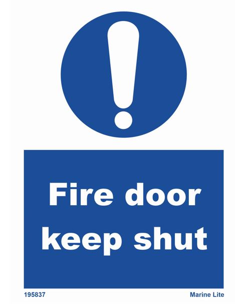 Safety Signage>Signage Mandatory sign - Fire door keep shut (150x200) Productcode: 145837 Download this page Mandatory sign - Fire door keep shut (150x200) Request Quote