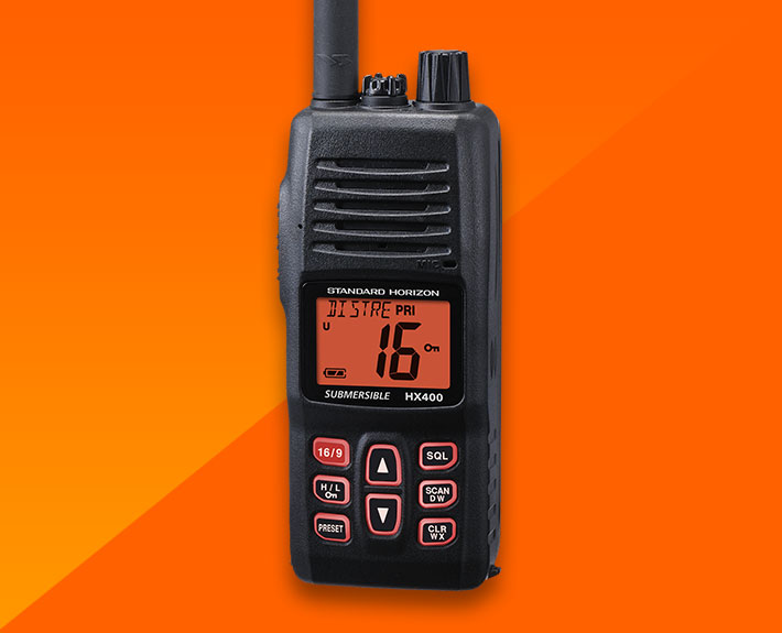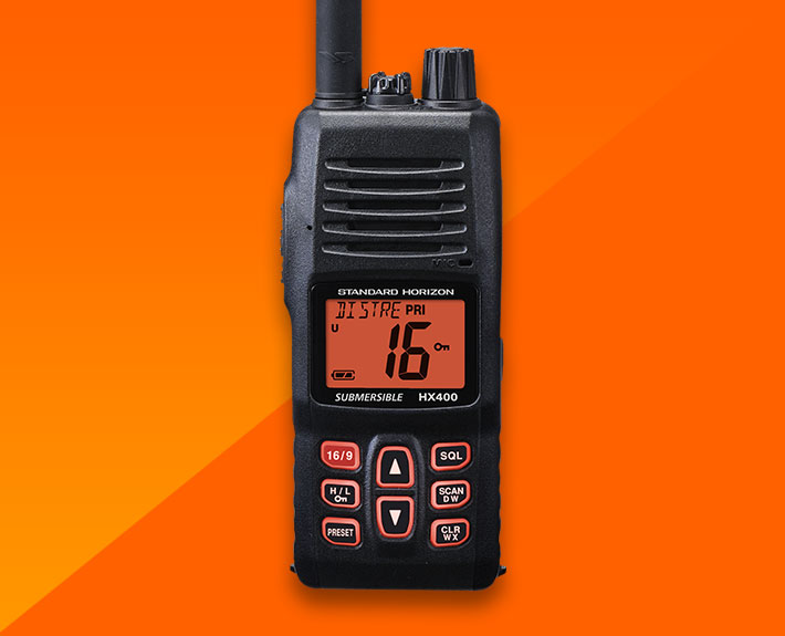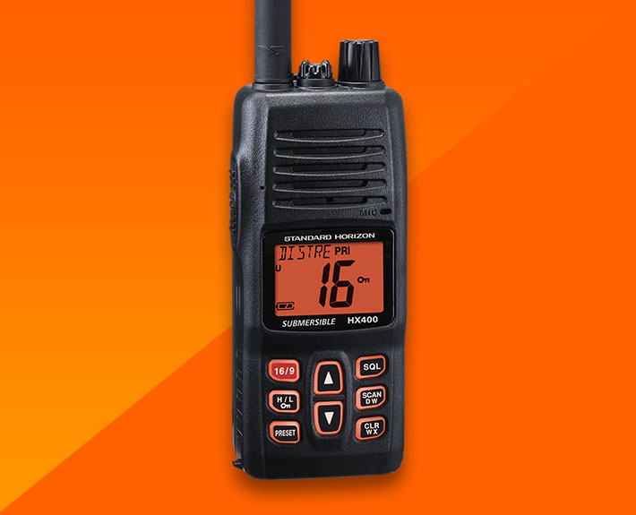 The Standard Horizon HX400E is designed to be heard in even the noisiest environments with 700mW of power supplied to the internal speaker.