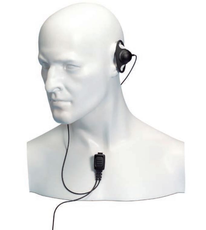 A 'D' shaped, soft rubber-feel earpiece which fits over your ear. This is connected to a combined tie clip microphone and press to talk button via a curly cable. A rotating strain relief clip can attach to your collar to prevent the earpiece being dislodged if the cable were pulled. The EA12/950 allows the radio user to carry the radio on their belt and have the facility to both make and receive calls without removing their radio. This keeps the radio safe and ensures that calls are not missed, especially in noisy environments. This accessory is designed for light to medium duty applications, so to ensure maximum life span it should be personally allocated to users.