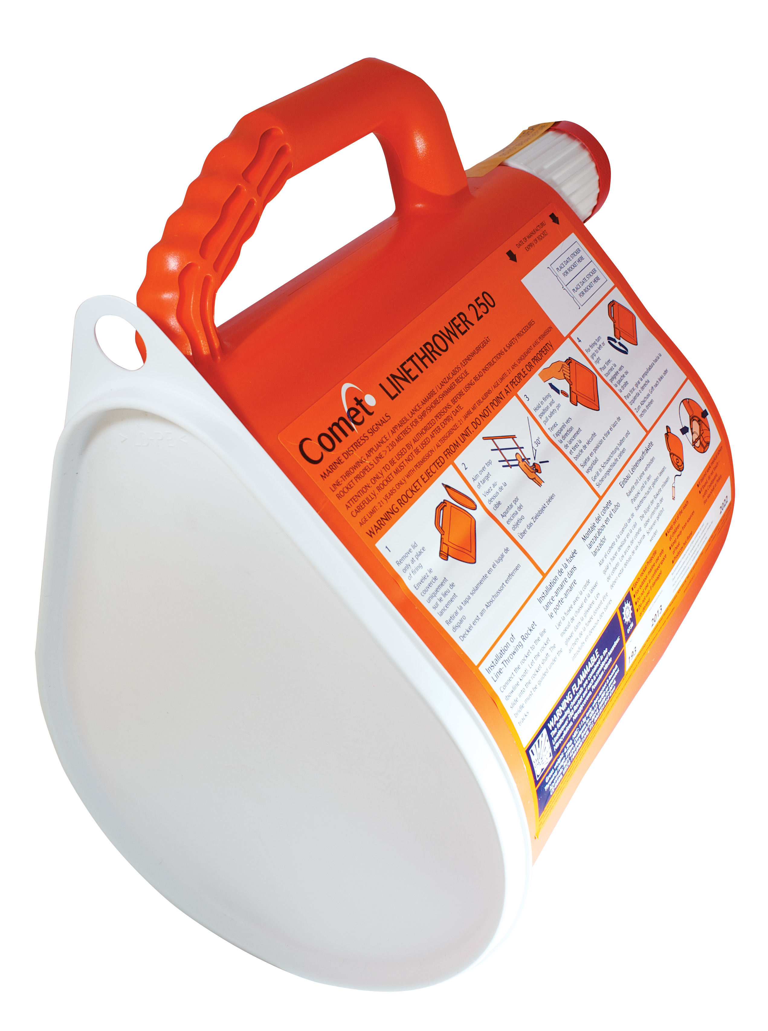 Fully compliant to the latest international SOLAS legislation, the device has a throwing range of between 230m and 250m and meets world-wide approval standards.