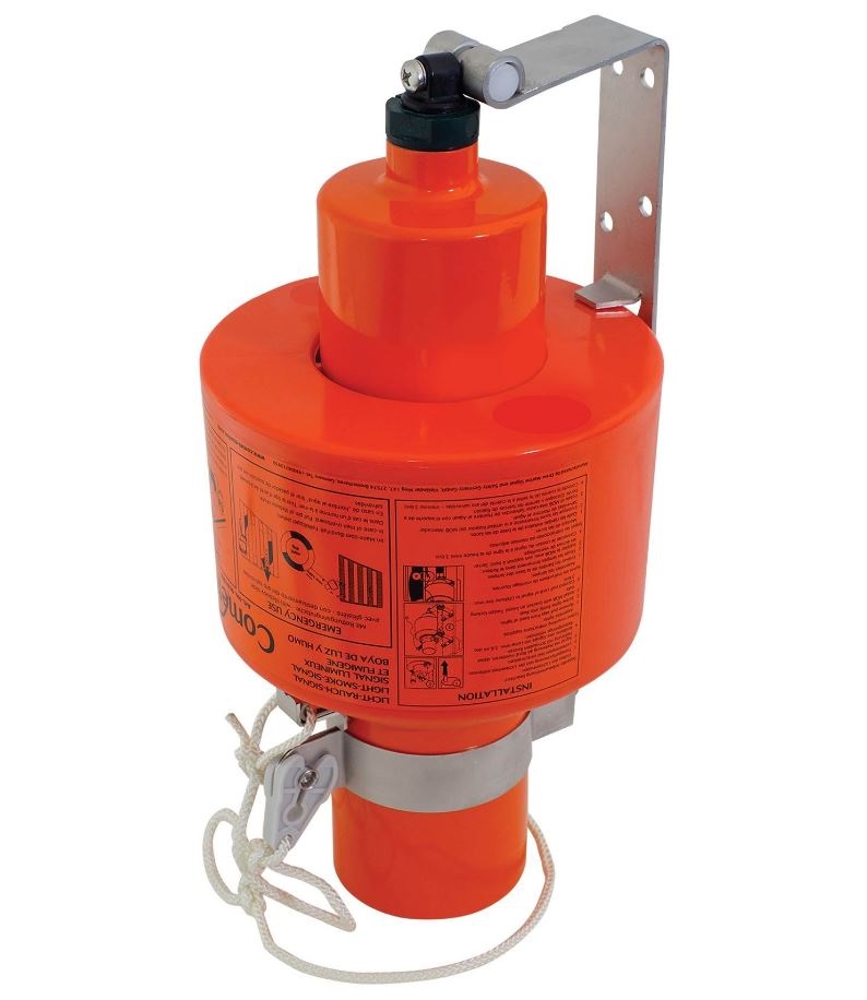 15 minute orange smoke Manoverboard day time lifebuoy marker.