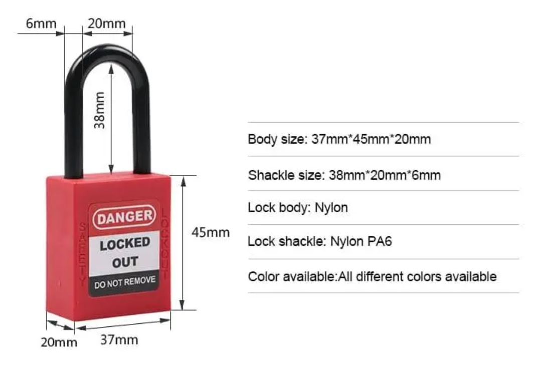 - The lockout padlock is made of nylon body, withstand temperature from -20degrees to +120degrees. The nylon ensuring the strength and deformation fracture not easy.