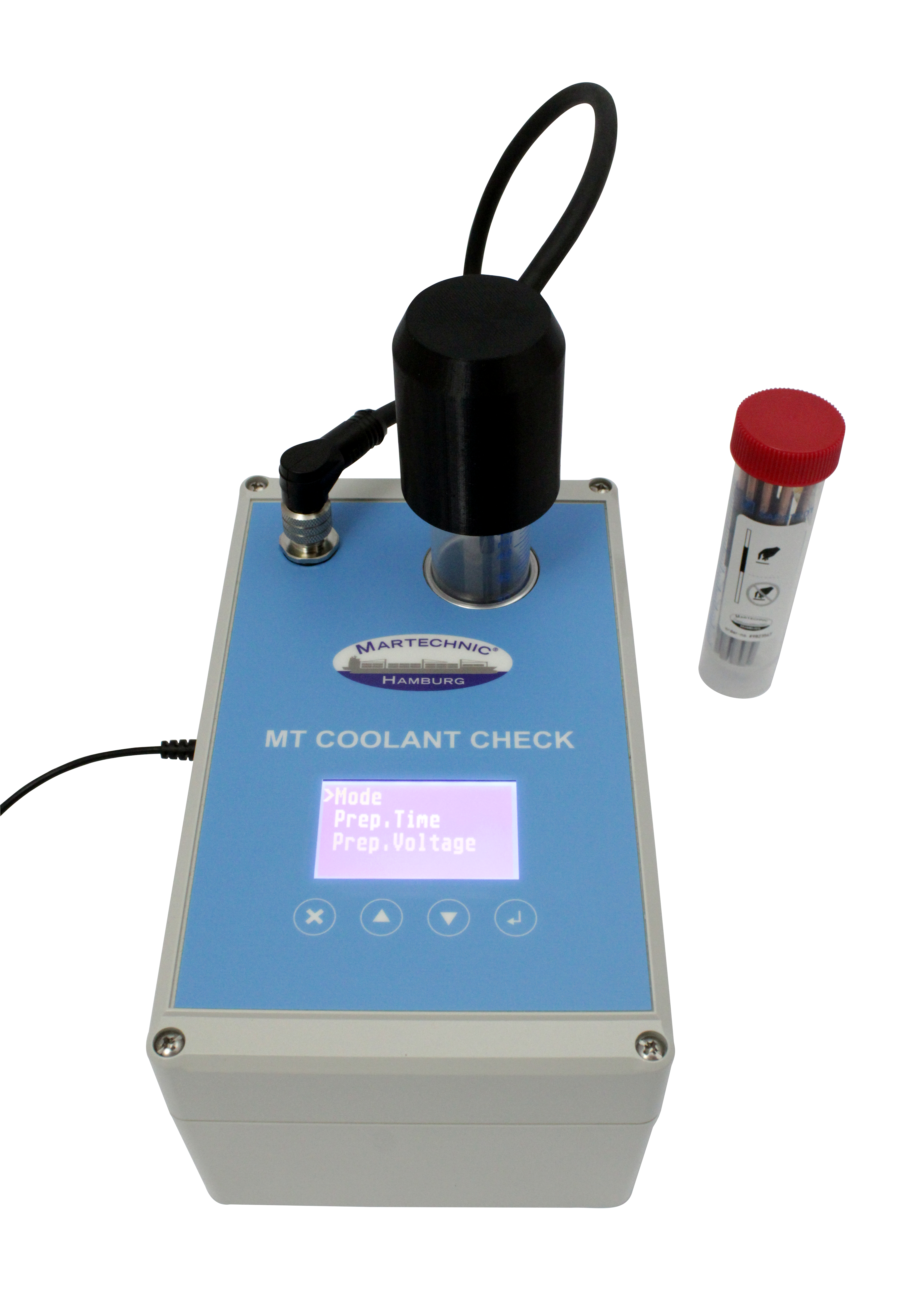 The test device MT COOLANT CHECK is the latest technological development of Martechnic, designed for routine assessment of the engine coolant quality in the global shipping sector and beyond.